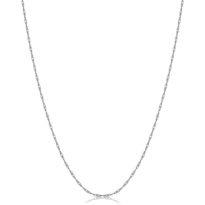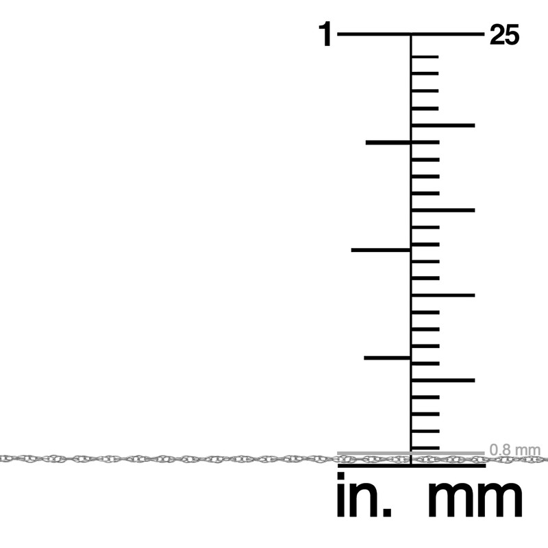 - DIMENSIONS - This rope chain is 0.8 millimeters wide and 20 inches or 50.8 centimeters long. This 10k white gold chain is thin and lightweight. It secures with a spring ring clasp.