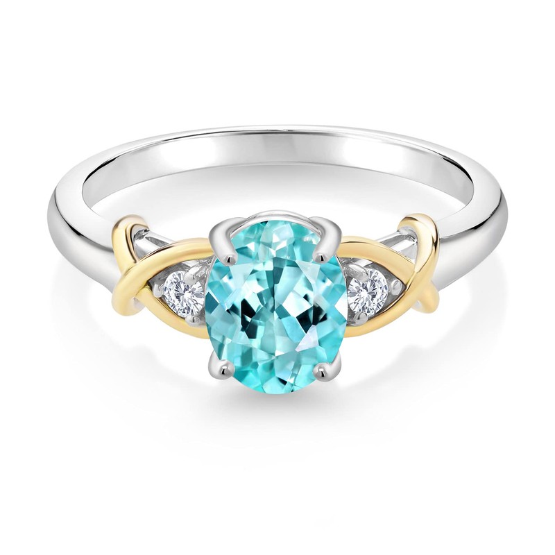 10K Yellow Gold and 925 Silver Gemstone Birthstone and Lab Grown Diamond Engagement Ring For Women | Oval 8X6MM and Round 2MM | Two-Tone Intertwined Crossover Wedding Anniversary Promise Ring