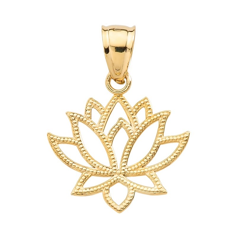 10k Yellow Gold Open Design Lotus Flower Pendant