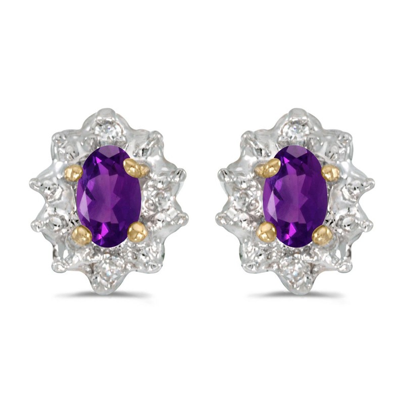10k Yellow Gold Oval Amethyst And Diamond Earrings