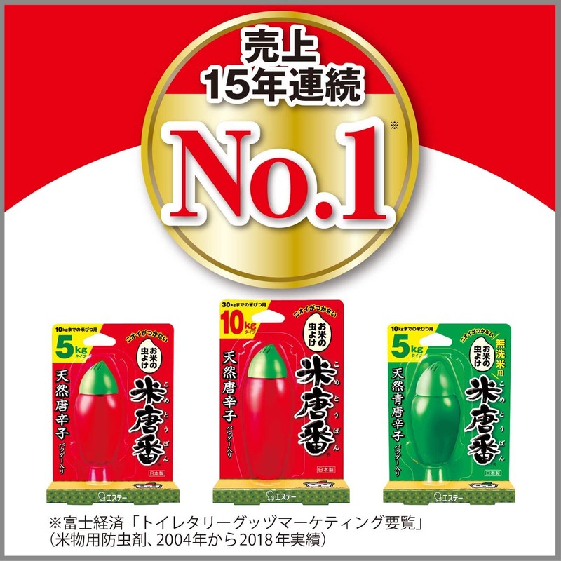 - 【お米の虫よけ 米唐番】米びつ用防虫剤。天然唐辛子と酒精(発酵アルコール)、クミンアルデヒド(香辛料由来成分)入りの唐辛子ゼリーがお米を虫から守ります。
