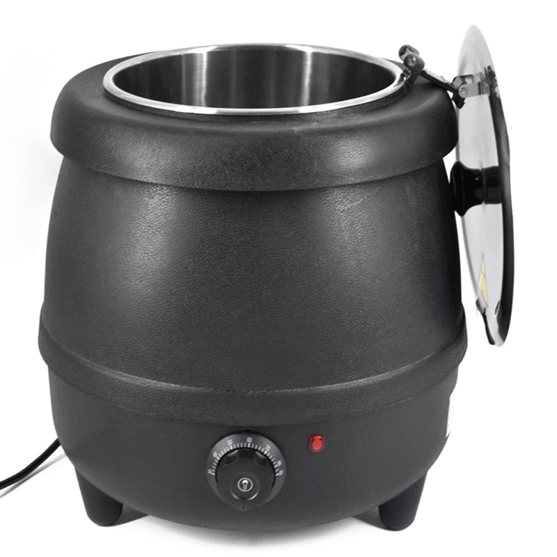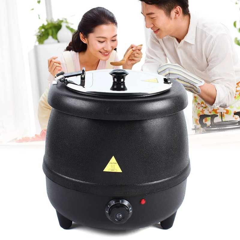 10L/10.5 Qt Commercial Grade Soup Kettle, 400W Soup Food Warmers with Hanging Lid & Detachable Stainless Steel Insert Pot Adjustable Temperature 86-185℉ for Restaurants Large Families