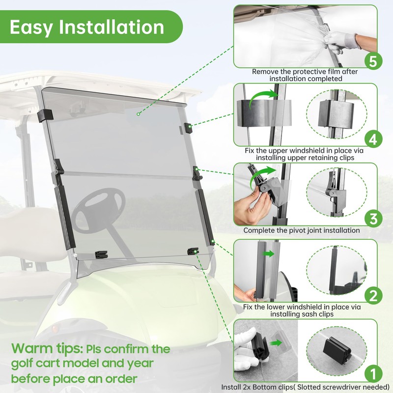 - Warm tips: Please strictly follow the instructions. Do not modify the windshield. Do not remove the protective film before installtaion completed