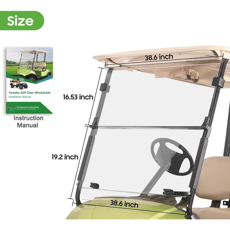 - Clear folding windshield for Yamaha G29/Drive gas and electric golf cart 2007-2016