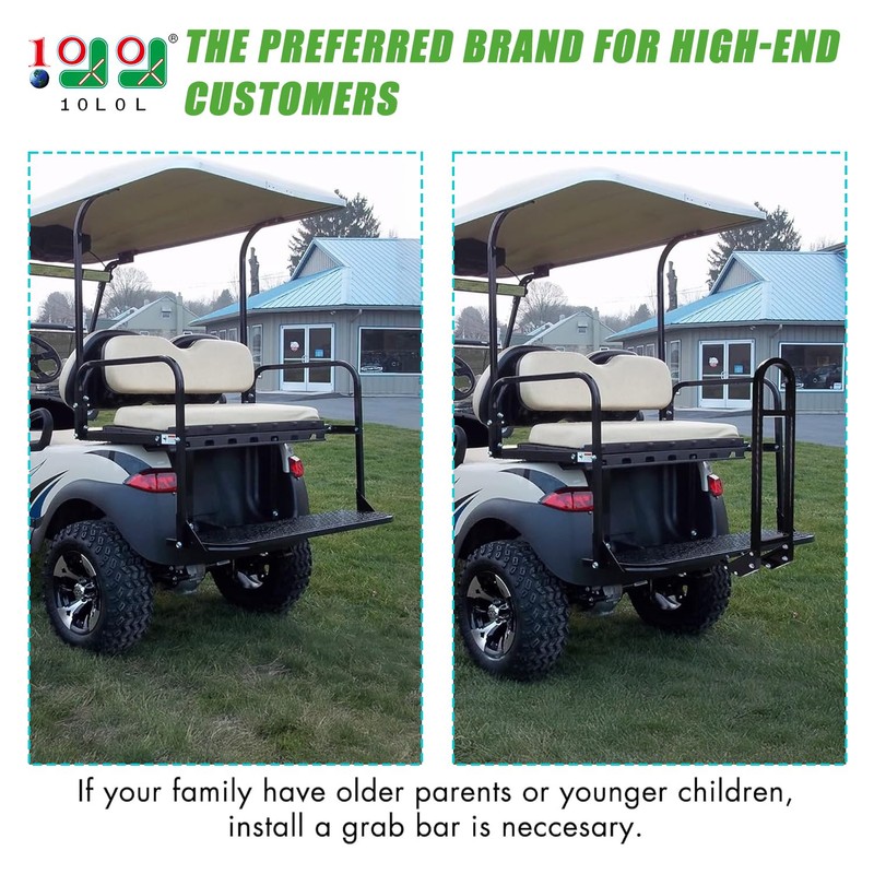 - Universal: These golf cart rear seat safety grab bar and trailer hook hitch fits most EZ-GO, Club Car and Yamaha seat kits with a metal foot plate.