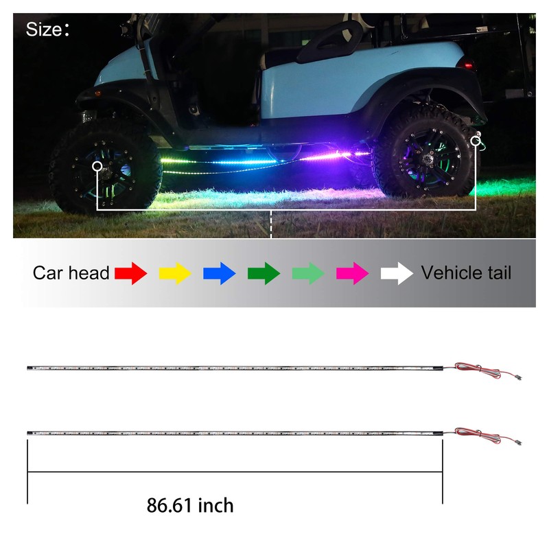 - Universal neon underglow LED Lights kit for EZGO Club Car Yamaha and most golf carts, atmosphere decoration light, good for dressing up your carts in any festival such as Halloween, Christmas day, New Year and so on