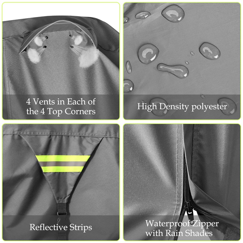 - The side and rear door zippers make it easy in/out access to golf cart while covering, 4 air vents keeps your cart breathable and dry, 2 reflective strips for safe parking at night