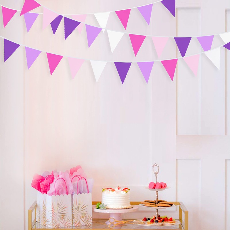 - 【ESSENTIAL PARTY SUPPLIES】: These rose hot pink purple colored fabric triangle flags are good ideal for any kind of celebration, party, festival, events or other occasion. It can be used by both kids and adults. Like girl’s party, unicorn party decoration, mermaid birthday party, under the sea party, little mermaid party, wedding, baby shower, nursery christening, family gatherings, outdoor activities, picnics, BBQs carnivals, circus, tea party etc.