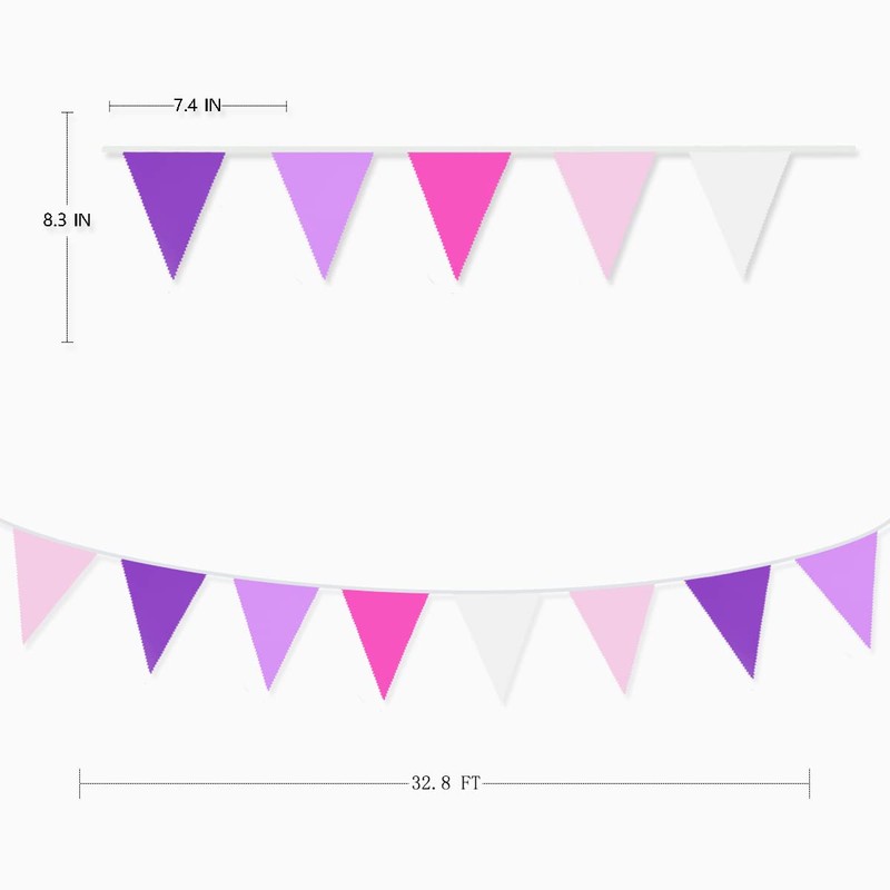- 【PACKAGE CONTAINS】:1 pack fabric bunting banner garland in dark purple, purple, hot pink, pink and white colors, with 36pcs flags in 10M/32.8Feet. Flag Size: 5.5in width x 7in height.