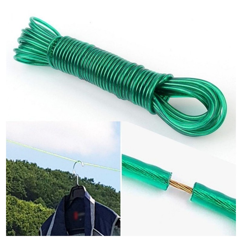 10M Coated Wire Basic Clothesline for Rooftop, Indoor, Camping, and Travel 10M 2ea