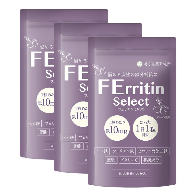 フェリチンセレクト 鉄 10mg フェリチン鉄 ヘム鉄 葉酸 ビタミンC サプリメント 漢方生薬研究所 (3袋)