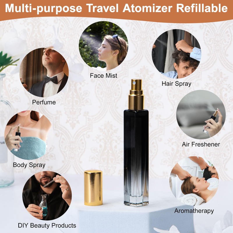 - VERSATILE USE: It is not only an ideal for storing and dispensing perfumes, colognes while traveling, but also can be used as a hair spray bottle, air fresheners, room sprays, body sprays, DIY beauty products, aromatherapy, pillow mist and any other mixtures