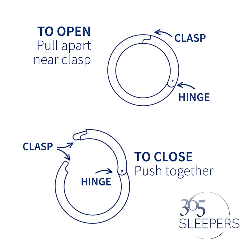 • 365 SLEEPERS rings are the most popular type of nose hoop/earring. They are easy to open and close and do not require any tools. You can sleep, swim, work, or exercise with these in as they click shut and will not fall out. Our hinged segment rings are made from solid 316L Surgical Stainless Steel. Surgical Stainless Steel is a popular choice for nose rings and earrings because it is hypoallergenic, affordable and a safe metal suitable for healing a fresh piercing.