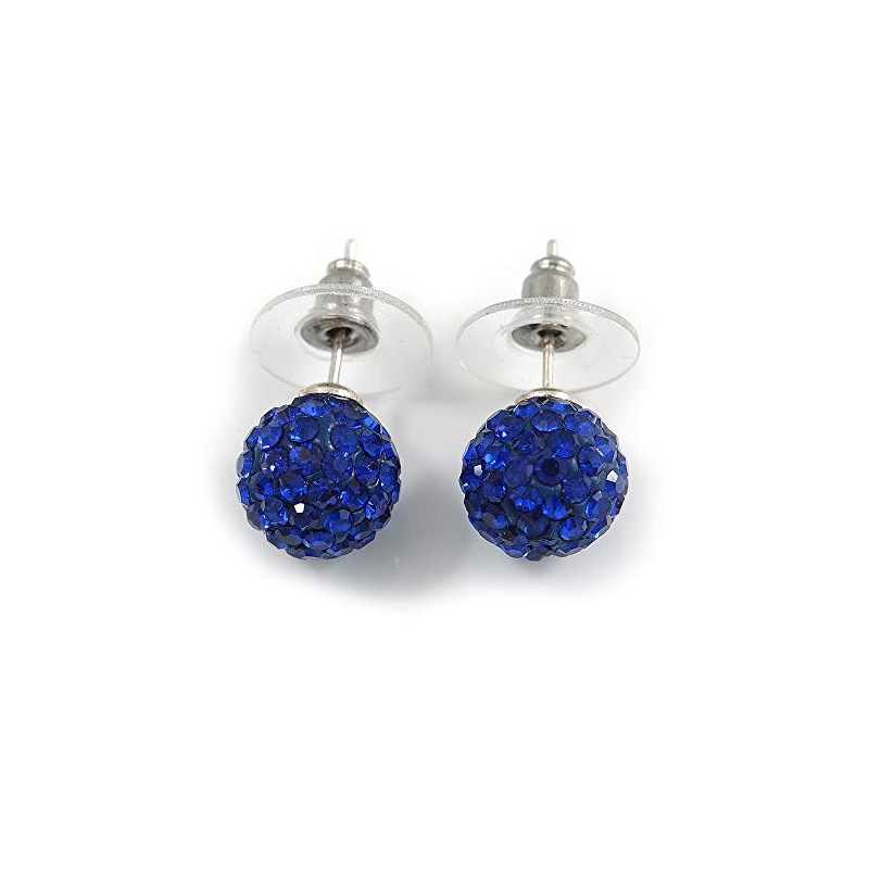 10mm D/Montana Blue Crystal Ball Stud Earrings/Silver Plated