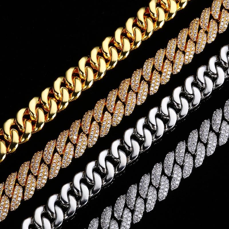 10mm Ice Cuban Link Chain Bracelet Hip Hop Jewelry 18K Gold Plated Brass Two Row Zircon Crystal Iced Cuban Bracelet gifts:_Silver_8inch