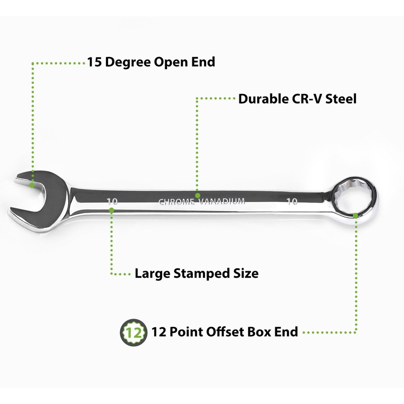 10mm Wrench, Industrial Grade Spanner, Combination wrenches Metric with 12-Point Box End, 15-Degree Offset, 10mm wrenches Chrome Vanadium Steel Mirror Polished
