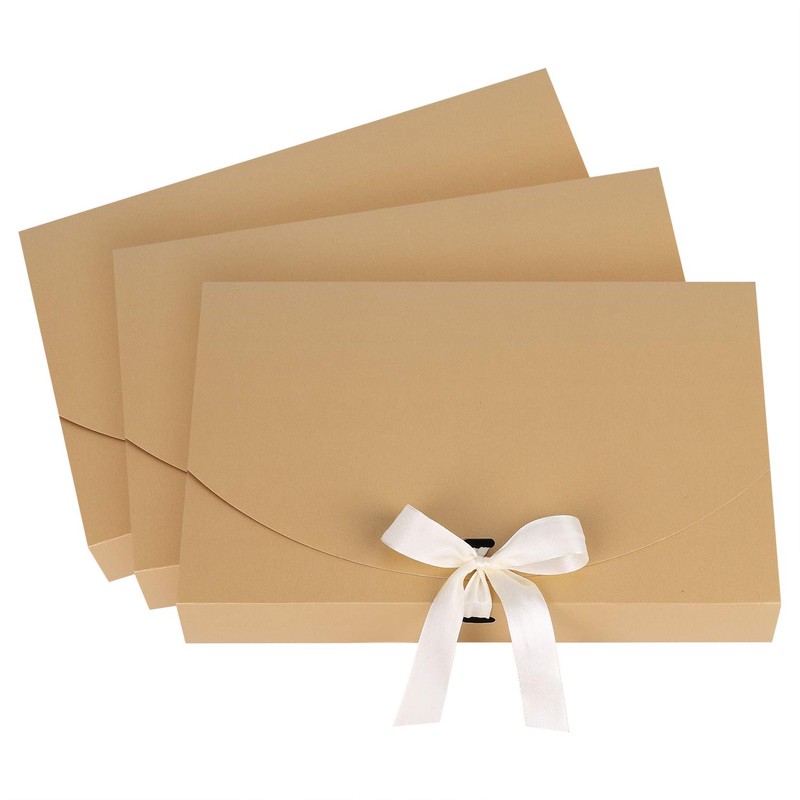 - SOLID COLOR BOXES WITH LID RIBBON:Gift envelopes is made of eco-friendly solid color cardboard with pearl-like gloss,paper boxes with silk ribbon is very simple but elegant,thick and fine textured hand feel,makes your wrapping flat presents became attractive,exquisite and advanced gift.