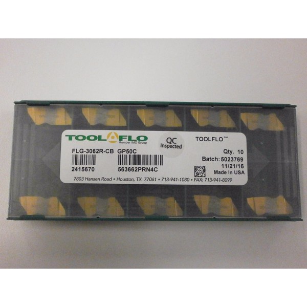 - 10pc) ToolFlo FLG 3062R-CB GP50 Top Notch Carbide Grooving Inserts NG 3062RCB