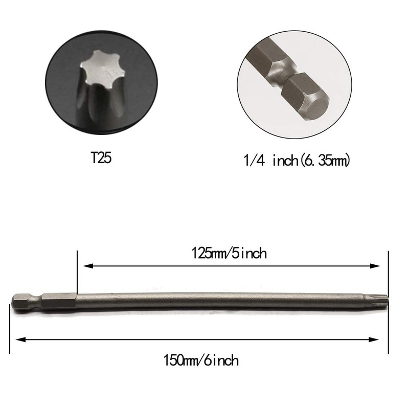 10PCS 6"/150mm T25 Torx Head Screwdriver Bit Set, 1/4 Inch Hex Shank with Qui...