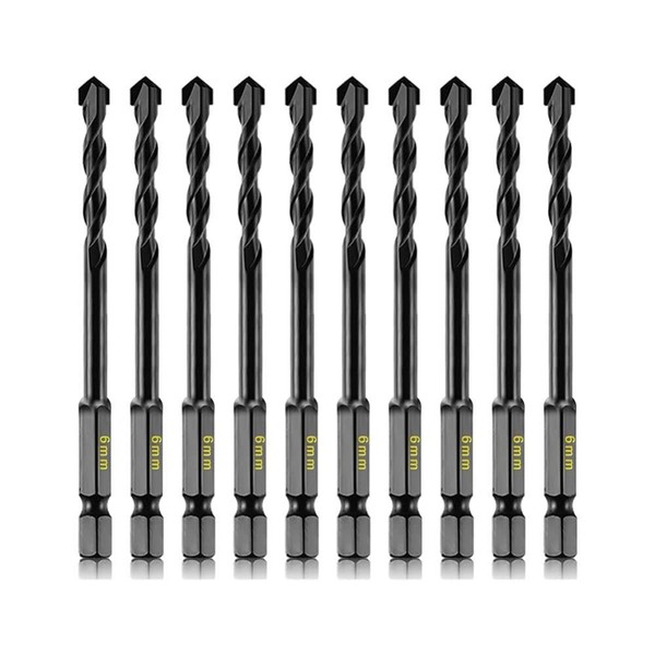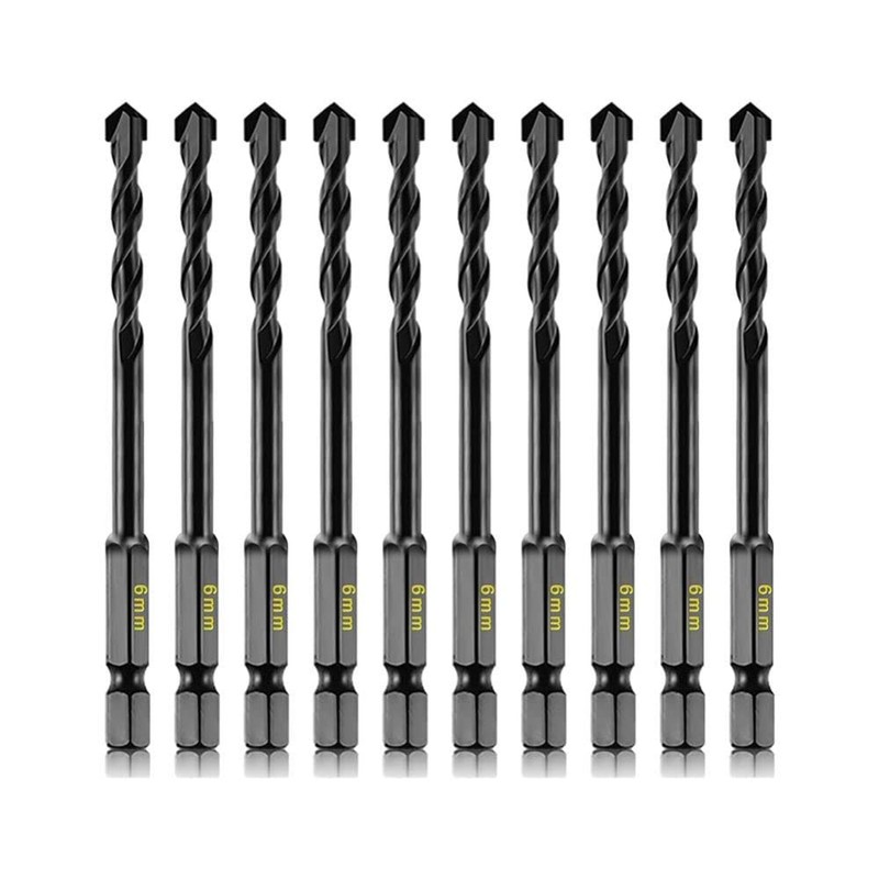 10pcs 6mm Masonry Drill Bits Set for Concrete Tile Brick Stone, Carbide Drill Bit Set for Plastic, Ceramic and Wood