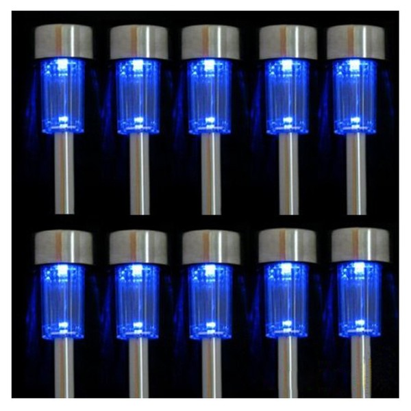 NEWOTE 10pcs Blue LED Outdoor Steel Garden Solar Powered Landscape Light Lamp