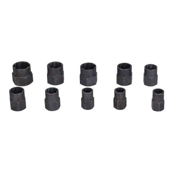 1、Spiral Cutting Teeth: The spiral cutting teeth provide positive grip for removing round or damaged screws 2、Sturdy Tools: This is a set of 10 sturdy tools that can help remove nuts, bolts, screw heads, studs, etc 3、Suitable Sizes: The sizes are suitable for its disassembly are 9, 10, 11, 12, 13, 14, 15, 16, 17, and 19mm 4、Quick Working Tools: These tools can be used with electric metrics wrenches or sockets for improving your working efficiency 5、Chrome Vanadium Alloy Steel Material: Made of chrome vanadium alloy steel, has high strength and is very durable