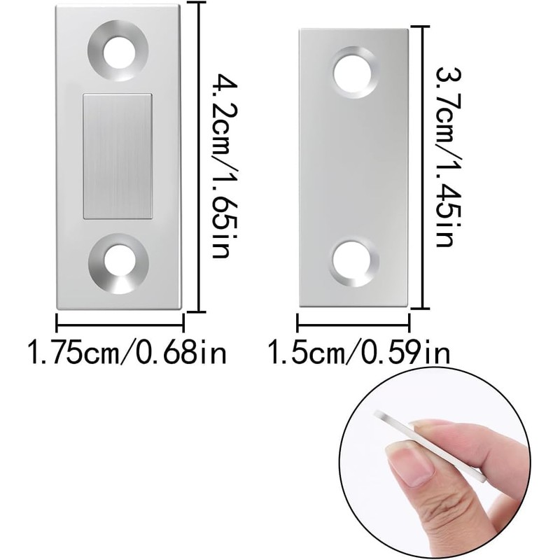 - [High quality material] : The magnetic latch is made of high quality zinc alloy, which is crack proof and moisture-proof, so the cabinet magnetic buckle is more durable than the cabinet magnetic buckle made of other materials.