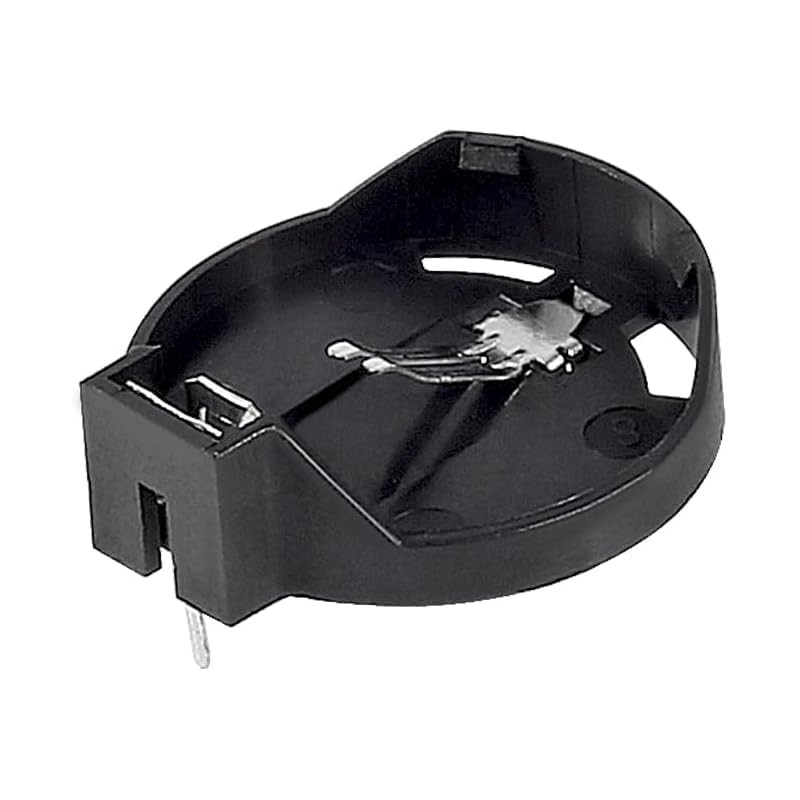 - Coin Cell Battery Holder with Leads: cr2032 battery holder with 2 Pin PCB Solder Mounting Lead, tinned wire end; Black color.