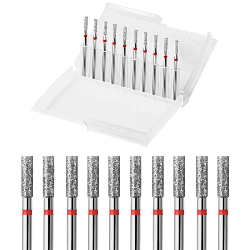 10pcs Diamond Cuticle Nail Drill Bits Set (2.5mm Flat Barrel Cuticle Bit, Fine-F)