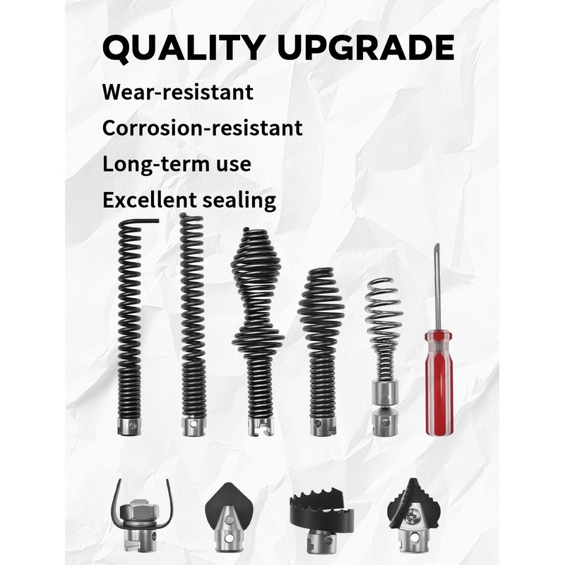 - Function: 10PCS multi-functional cutter head kit with a pair of glove, can solve various types of blockages, solve stubborn objects, and discharge water smoothly