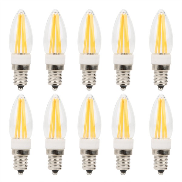 10Pcs E12 Long Filament Light Bulbs 3W AC110V Chandelier Ceiling Lamp Bulb Warm White
