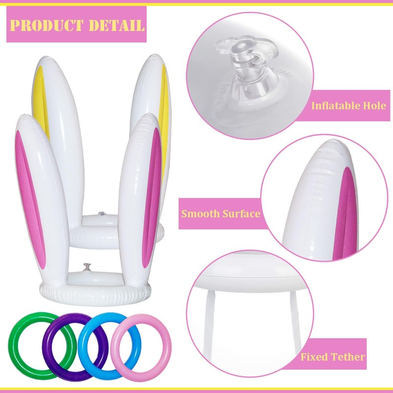 - Package Includes:2Pcs Inflatable Bunny Toss and 8 Rings.size: 24 x 38 cm( length x height ). Hoops diameter:20cm. Head loop excircle diameter: 24 cm , inner diameter :14 cm , Don't worry, this loop fits most head