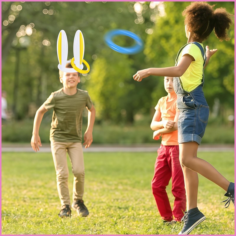 10pcs Easter Ring Toss Game Inflatable Bunny Ears Hat Rings Toss Toys for Kids,Adults,Easter Party Games Target Toy,Easter Rabbit Toss Game Props for Indoor Outdoor Family Fun Game Easter Party Favors