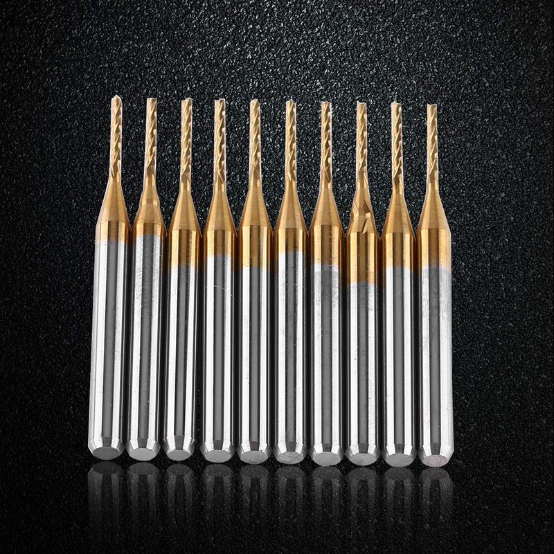 10pcs End Mill, End Mill Set, Mill Cutter, Titanium Coated Tungsten Carbide End Mill Carving Bit Milling Cutter Circuit Board for Plastic, Stainless Steel, Copper 3.175mmx1mm