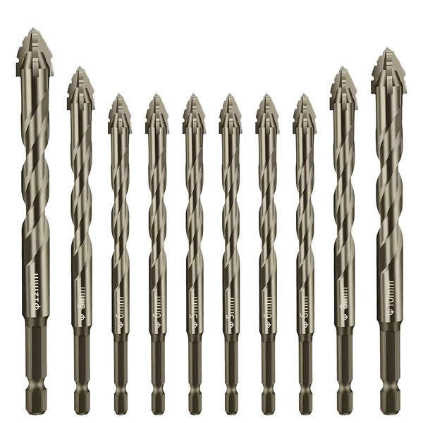 The industrial-grade yellow coating enhances corrosion resistance and visibility, while the 1/4" hex shank ensures compatibility with most standard drills and impact drivers. With 10 carefully selected sizes (5/5/6/6/6/6/8/8/10/12mm), this set covers all common drilling needs in home improvement, plumbing, renovation, and more.