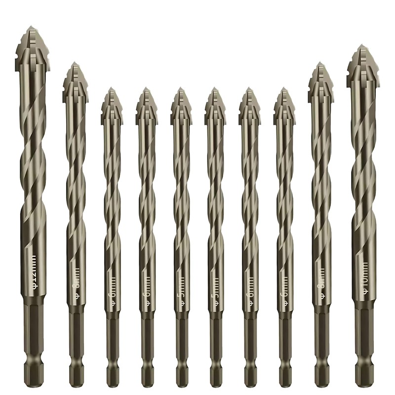 This 10-piece 4 flute serrated eccentric drill bit kit is engineered for professionals and DIYers who demand durability, precision, and efficiency. Each drill bit features a high-strength carbide tip with a serrated four-blade eccentric design, enabling quick and clean drilling across a wide range of materials—including tile, marble, porcelain, ceramic, brick, wood, and thin metal sheets.