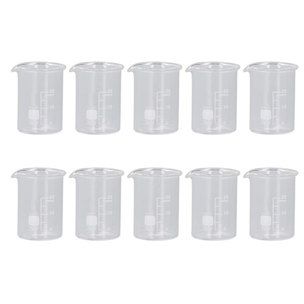 10PCS Glass Beaker Set Experiment Measuring Cup with Scale Teaching Equipment 25mL Capacity