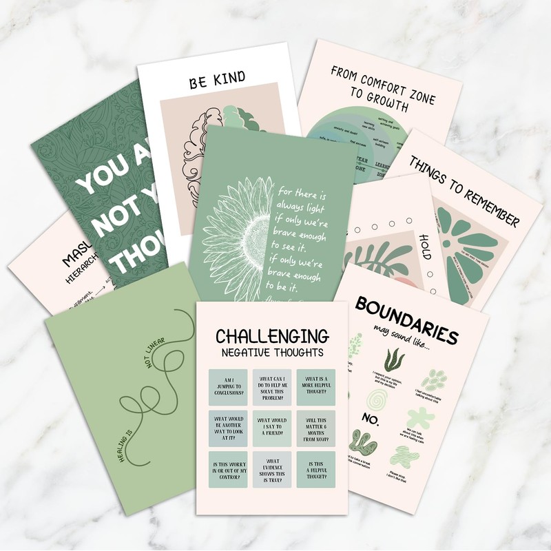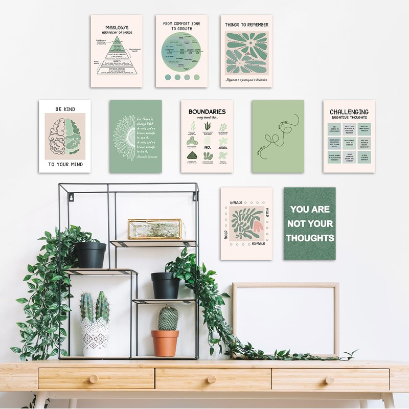 10Pcs Greenary Care Mental Health Posters, Mental Health Matters Poster, Therapy Office Decor, Counseling Office Must Haves, School Counselor Supplies, Mental Health Gifts,Social Worker Office Decor