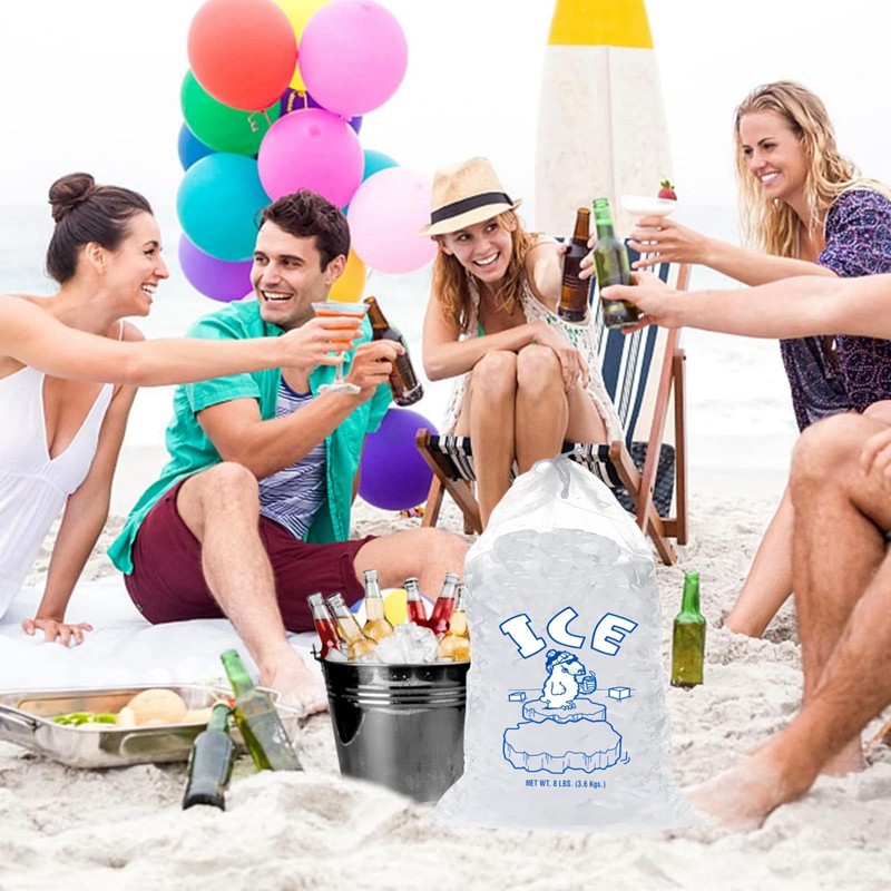 - MULTIFUNCTIONAL:The ice maker bags is not just for ice cubes.You can use ice bags for ice machine storage freezer keeper to store and freeze your favorite drinks,fruits,or even baby food.Plastic ice bags with drawstring is perfect for picnics,camping trips,or any outdoor activity.Come and try this heavy duty ice bags can withstand 8 pounds