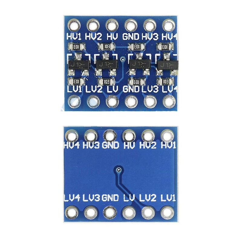 - Each level converter has the capability of converting 4 pins on the high side to 4 pins on the low side with two inputs and two outputs provided for each side.