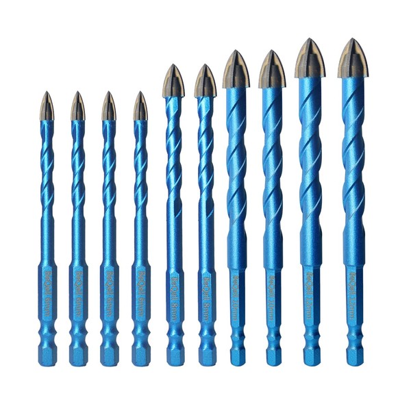 - 【Package Includes】Total 10pcs Carbide drill bits:2pcs of each 1/4",1/4",5/16",3/8",1/2"(6/6/8/10/12mm);Thread:Quick-fit Shank;Recommended 2000-5000 RPM,MAX 5000 RPM. The faster the speed, the longer the service life.