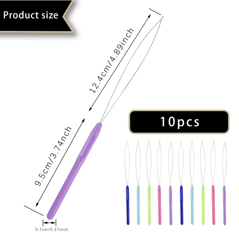 - This 10PCS hair extension loop threader set includes vibrant multicolored tools designed for precise and effortless pulling of natural hair through micro rings, nano beads, or tubes. Ideal for professional stylists and DIY hair extension enthusiasts alike.