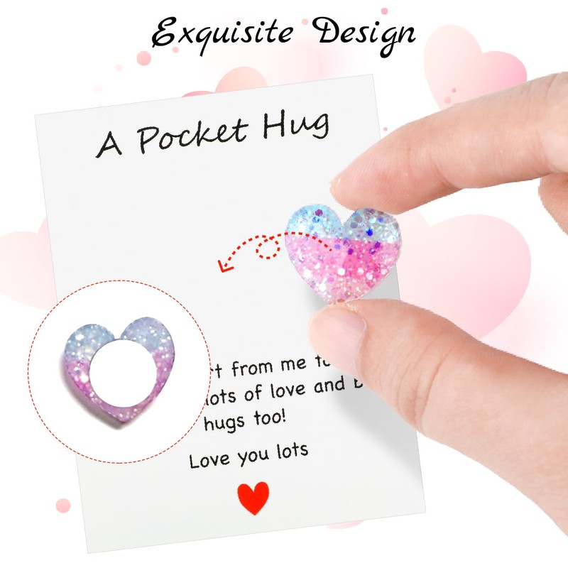 - 【Warm & Thoughtful Pocket Hugs】These adorable pocket-sized hearts with greeting cards offer comfort and emotional support, helping to relieve anxiety and brighten moods. Perfect for family, friends, or colleagues, they serve as a heartfelt reminder of love and care, even when you're apart. Ideal for long-distance relationships, birthdays, Valentine's Day, or just because.