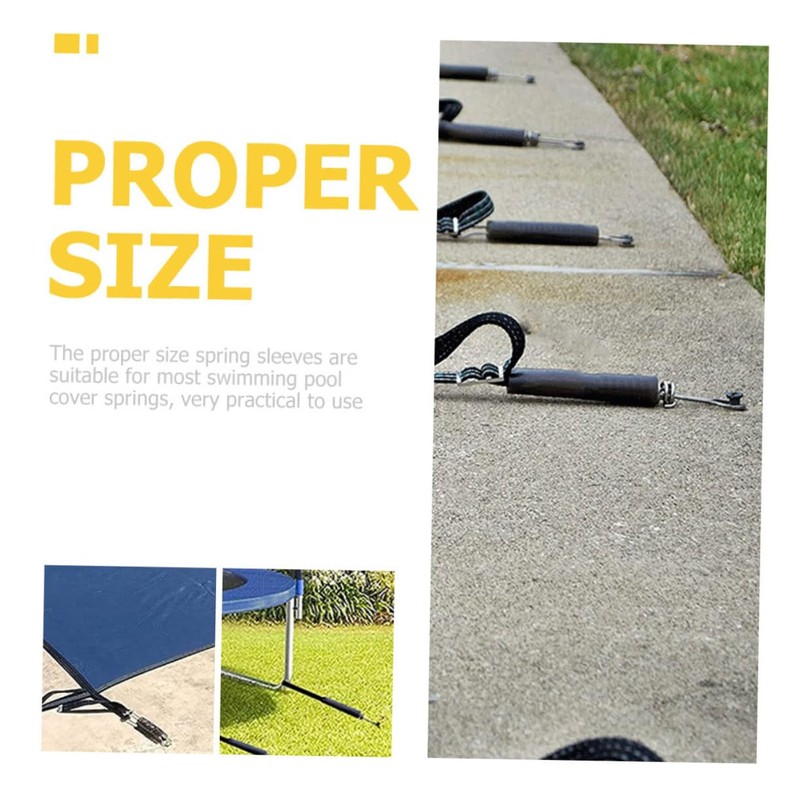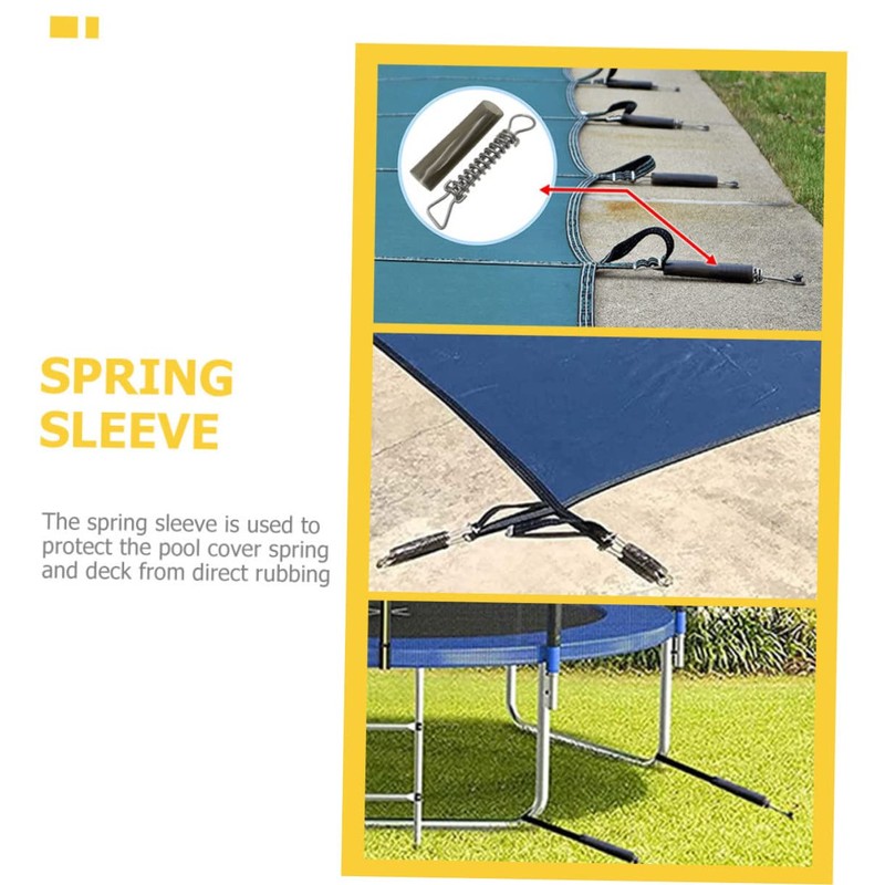 Pool Cover Spring Protective Covers The spring sleeve protects the spring from the damage of severe weather, to extend the lifespan of the spring.swimming pool cover spring cover The proper size spring sleeves are suitable for most swimming pool cover springs, very practical to use.Pool Replacement Spring Sleeves Made of durable material, easy to install, these spring sleeves are very practical for you to use