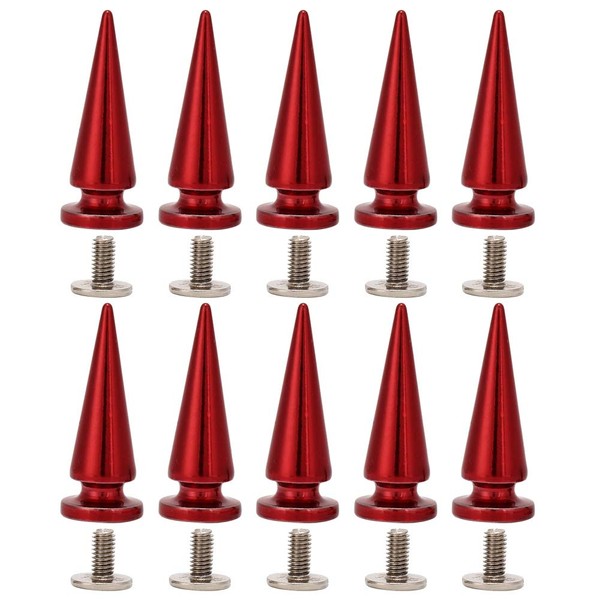 10Pcs Punk Rivets Stud Screw Tree Shape 10x26MM Large Size Cone Spike Back Spikes for DIY Leather Shoes Jacket Craft Garment Bag(Red)