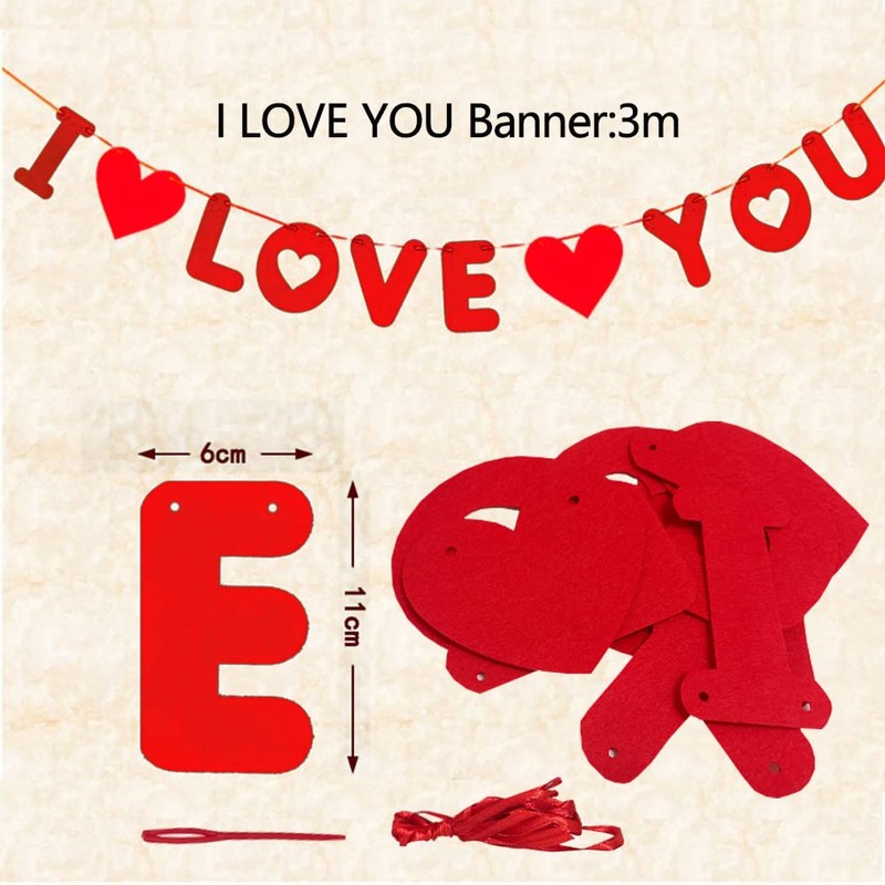 - ❤ Romantic Valentine's Day Decoration Set : Package includes I LOVE YOU Banner,5pcs Latex and 5pcs Confetti Balloons, a 10m red ribbon.