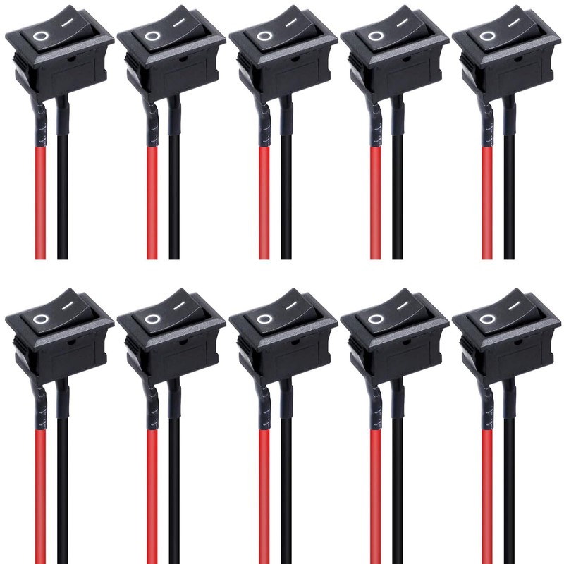 10Pcs Rocker Switch ON/Off 2Pin Latching Square SPST Toggle Switch Snap with Wires KCD1-X-F
