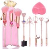 - 🌸【HIGH-QUALITY BRUSHES】Cosmetic Brushes set contains a Eyebrow Brush, two Eyeshadow Brush, a Lip Brush, a Powder Brush, a Blush Brush, a Eyebrow comb and a Foundation Brush.Heart-shaped silicone cleaner can help clean the brush after use. Soft and dense superior synthetic fibers can perfectly blends cosmetics without Shedding or hurt your skin