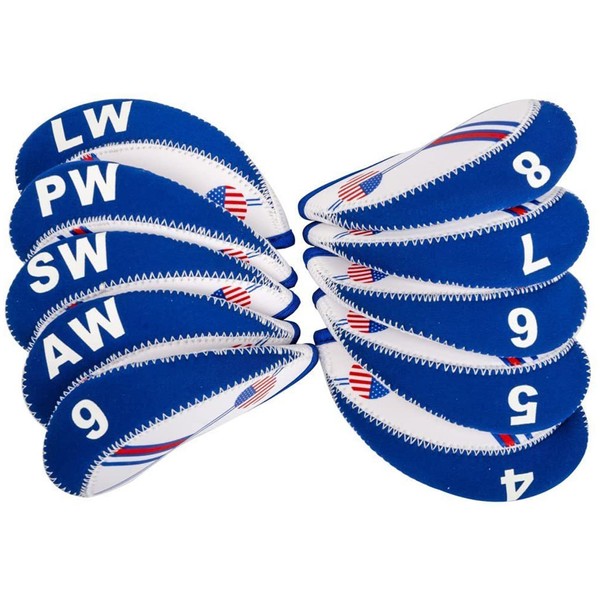 1、10pcs, one size fit all irons (4, 5, 6, 7, 8, 9, AW, SW, PW, LW). 2、 Golf iron covers. Designed to fit your clubs and protect them from damage during games or travel. 3、 Electric iron headcover with numbers for identification, British flag design, fashion and style. 4、 Easy to clean and washable. 5、 Perfect men's and women's gift ideas. A very suitable brush, suitable for all brands and sizes of iron golf club heads for dad, her, his children, is an ideal choice for golf lovers.