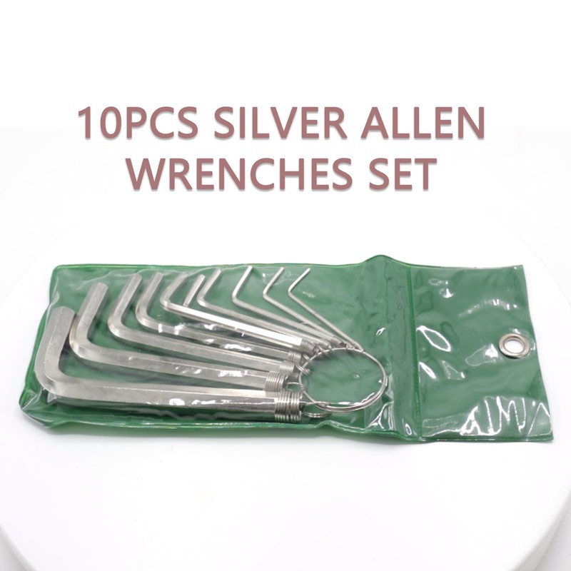 10pcs Silver Allen Wrenches Set, 1.5-10 mm Hex Key Key Chain Set, Portable L Shape Bike Allen Wrench Repair Tool